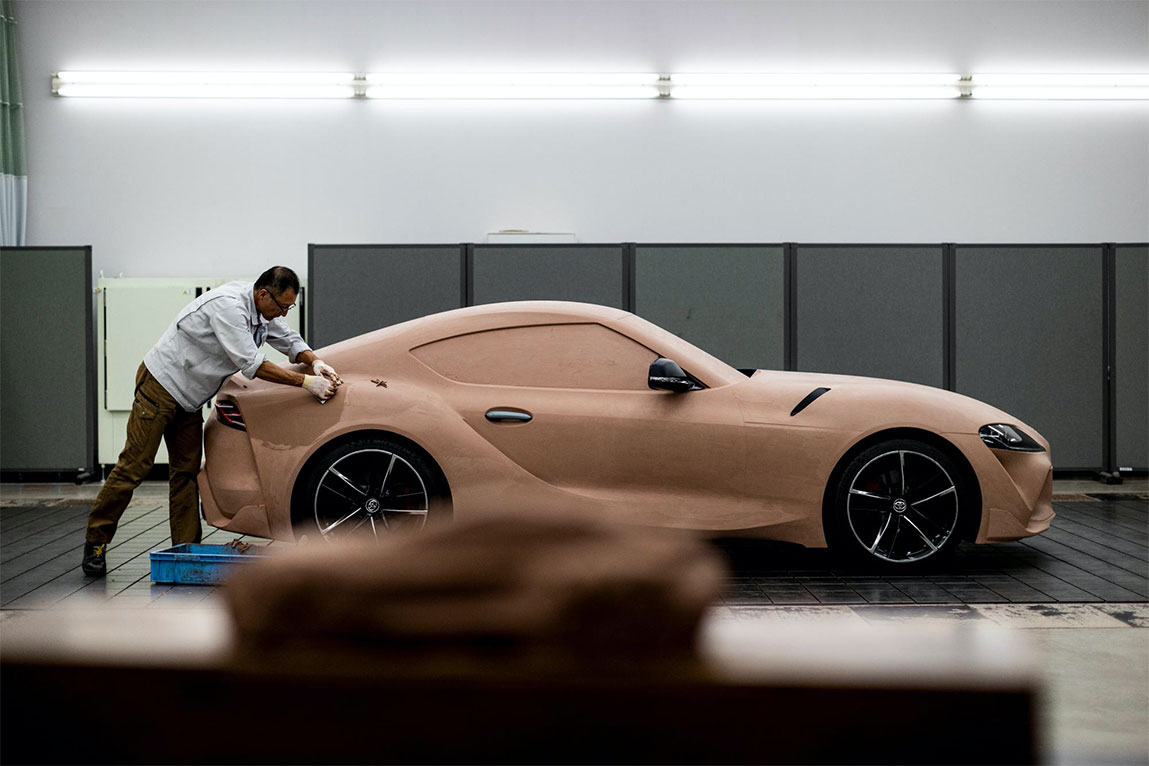 Supra的油泥模型上,为我们展示重新塑型后挡泥板部分,最后再次呈现完美车身的高超技艺。