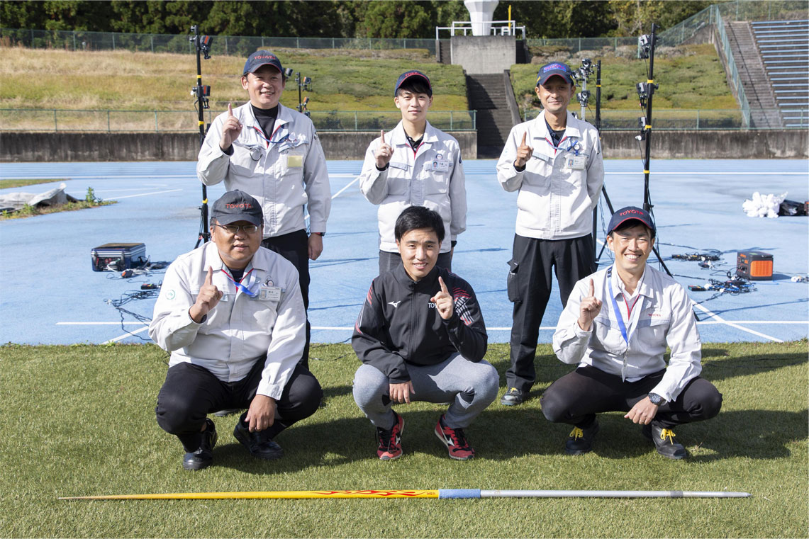 第一投,高桥掷出的标枪在空中划出一道漂亮的抛物线,并插进了40多米远的地面。来自丰田汽车研发中心测量与数字基础改革部的泽山纯也在高桥投掷完后走了过来,主要询问了“有什么感觉”等比较抽象的问题。在同一部门担任组长的藤本雅大认真地凝视着电脑屏幕上高桥的影像。