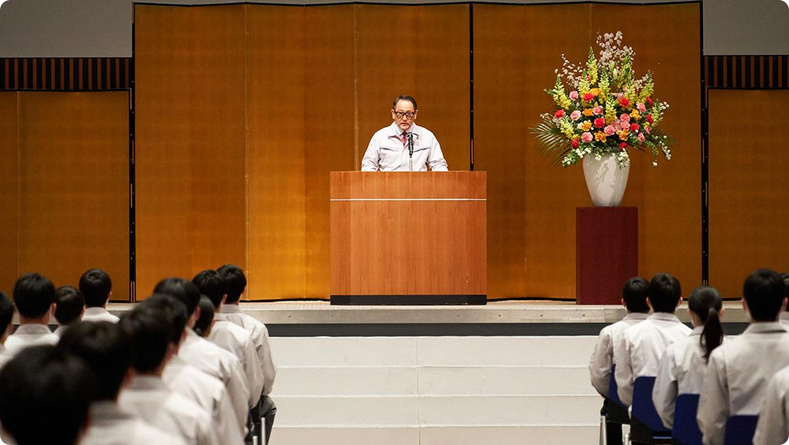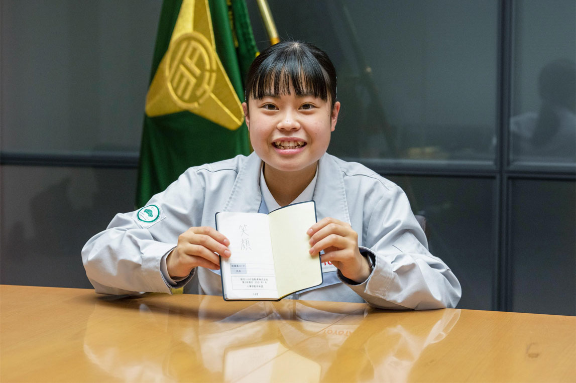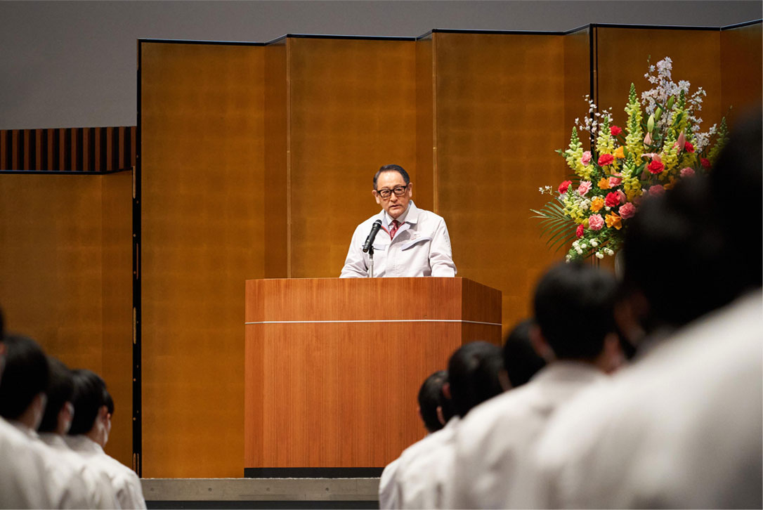 据闻,丰田社长每年都很期待举行毕业典礼。典礼结束后,他一边翻看训练生写在员工手册上的誓言,一边与众多训练生交流:“对,安全第一!”“要拿到世界技能大赛冠军!”……