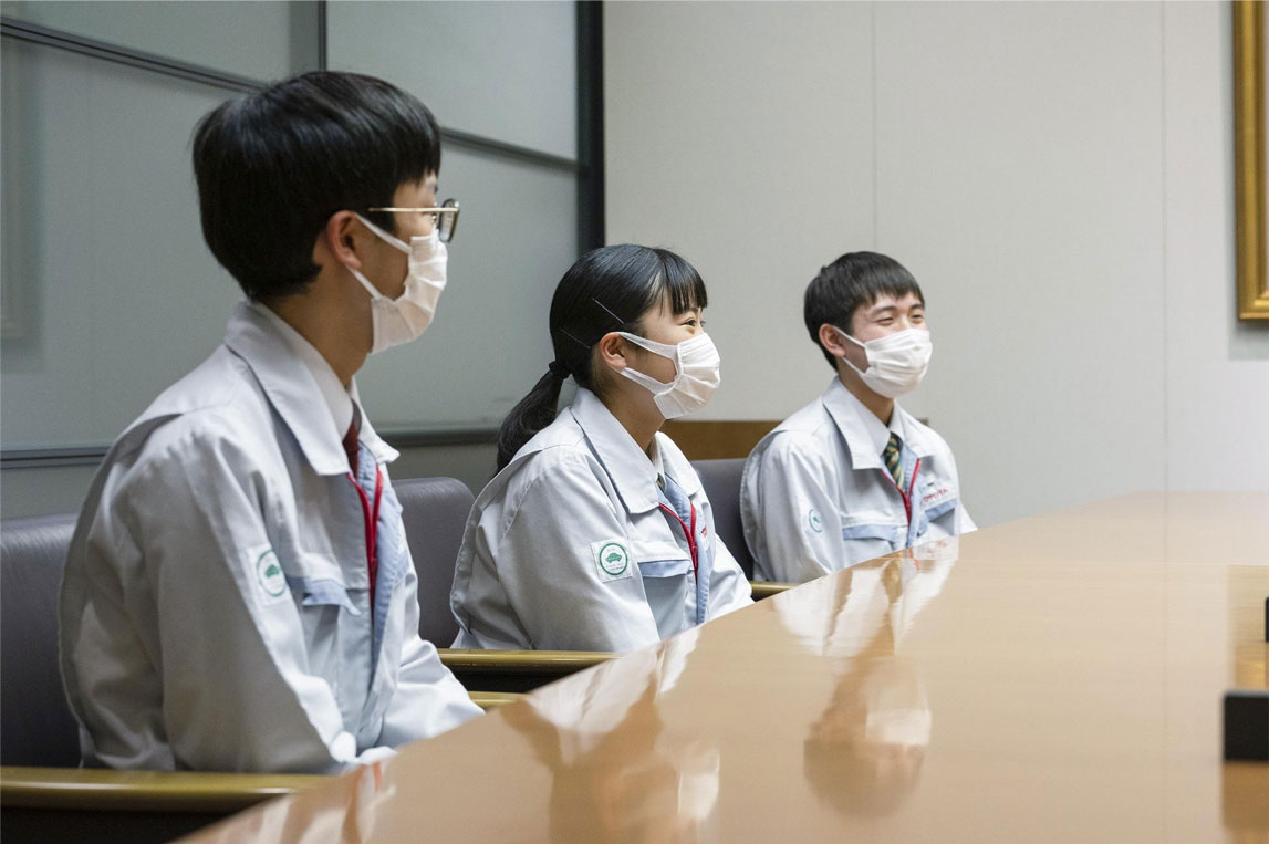 作为毕业生代表发言的高中部三年级学生渡边自15岁入学时起,就在远离家乡栃木县的丰田市宿舍中生活。在母亲独自抚养下长大的他这样说道,“自从我住宿以后,妈妈可能比我想象得更加寂寞。直到我已成为三年级学生的今天,她也每天都通过LINE与我联系。我深深感到,她一直都爱着我”。