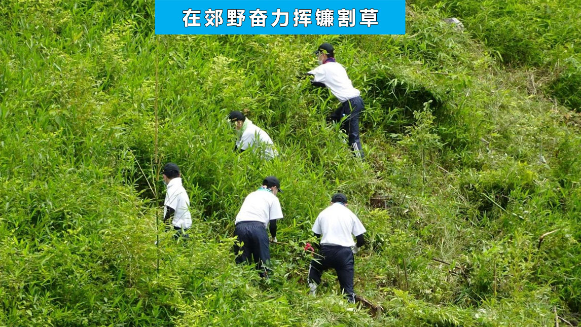 割草条件非常恶劣,需要冒着酷暑,带着口罩作业,甚至还有中途下雨的情况。即便如此,学生们也自行制定活动计划,参考丰田生产方式,确定每个人的职责,从割草到运出,建立了固定的人流物流流程。为了能够安全高效作业,学生们开动脑筋,积极思考。