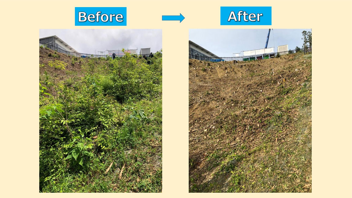 割草现场不仅有泥泞不堪,无法站稳脚跟的河畔,还有需要绑安全带的斜面陡坡。一开始的时候,她感到无从下手,“这种地方的草怎么割?”“这不是根本做不到的事情吗?”