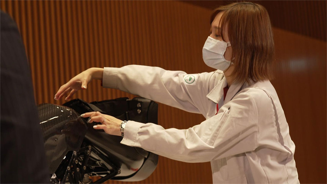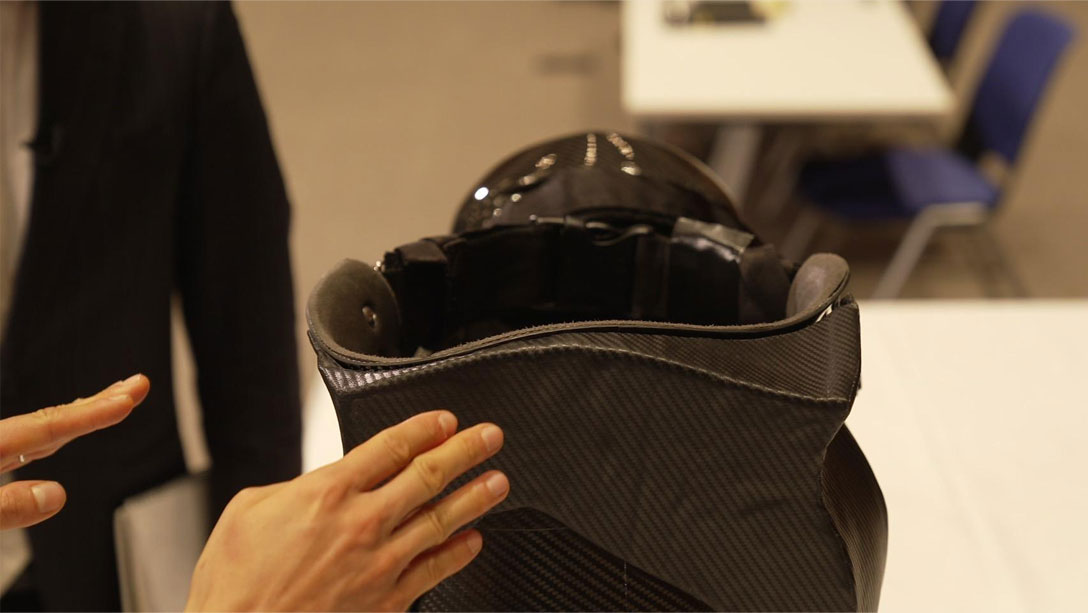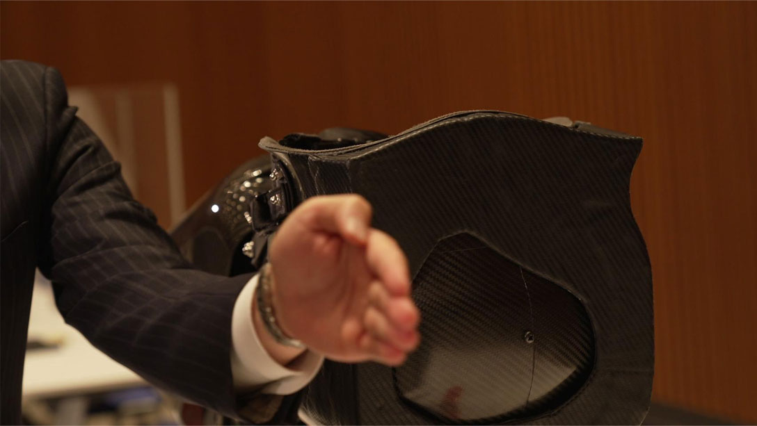 船桥:座椅是碳制成的,因为碳有厚度,所以不容易弯曲变形。考虑到这一点,我们需要调整其厚度。另外,碳是由纤维堆积而成的,纤维的堆积方式也能改变坚固感。