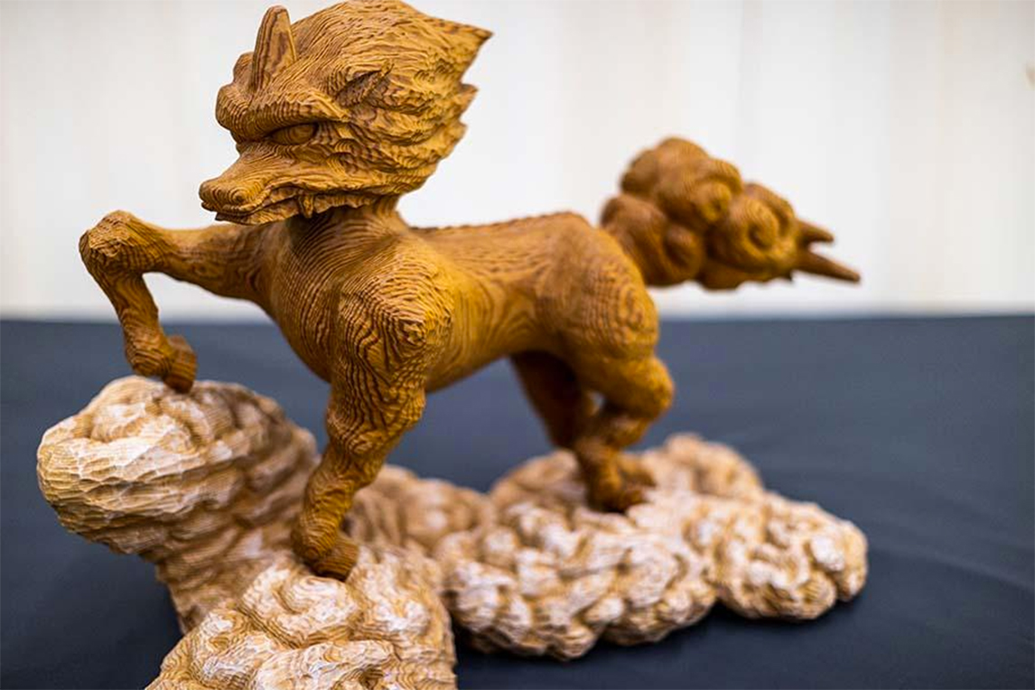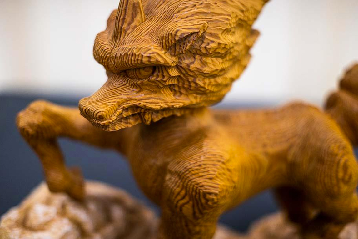 山下的挑战不仅限于皮革工艺。以精巧的麒麟雕刻作品为首,他细腻的木雕雕刻技术也令人惊叹。与其说他是工匠,不如说他是一名艺术家。