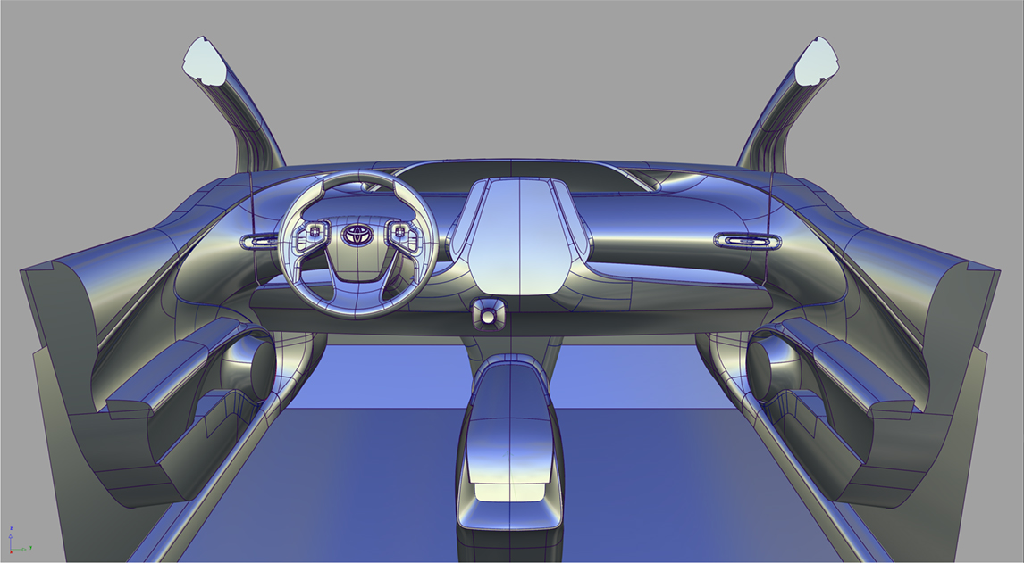 上图为在3D-CAD上完成的驾驶室周围的内饰设计。硬件建模师的工作便是将其在现实中制造出来