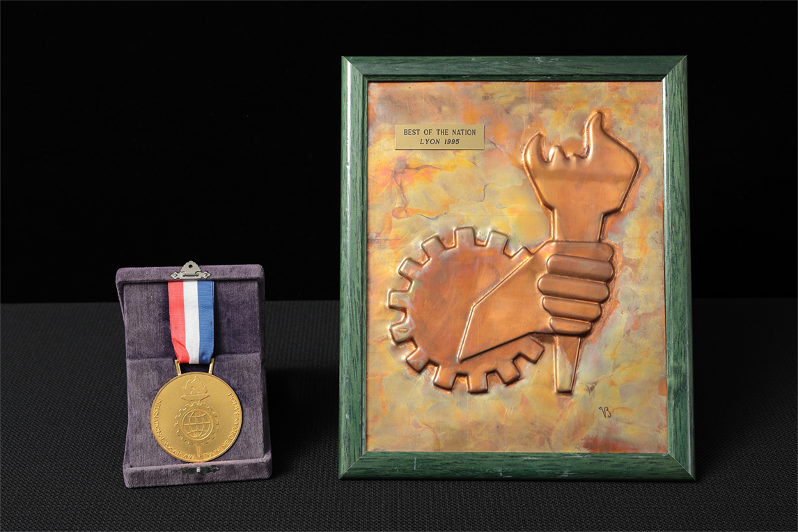 1995年,在第33届世界技能大赛法国大赛上获得的金牌和奖章