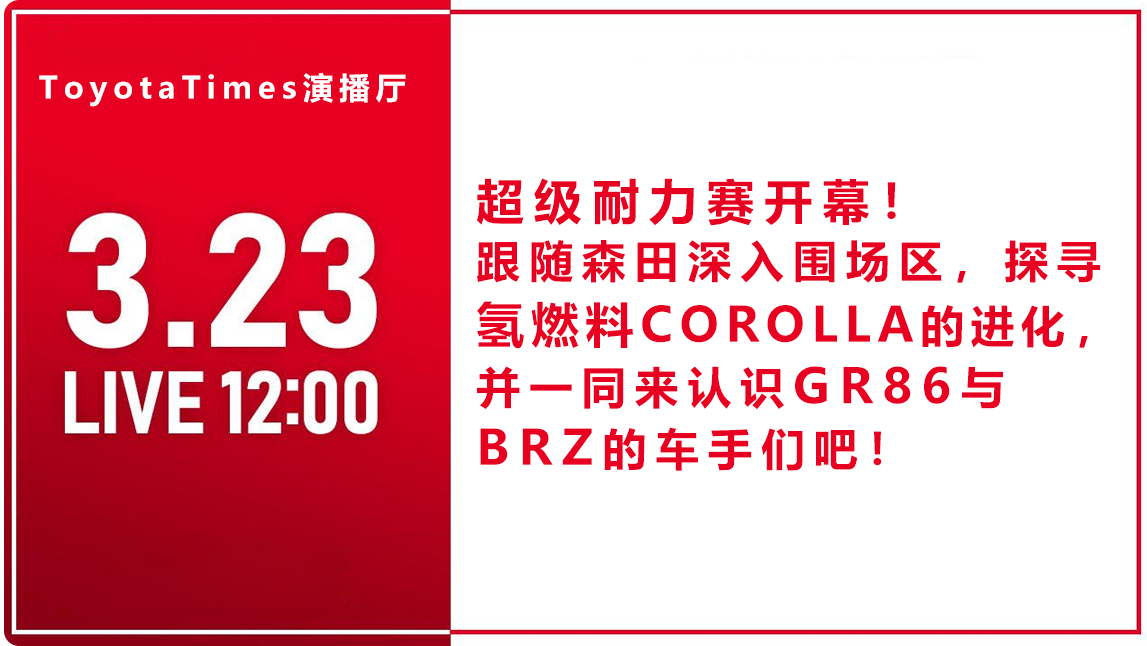 丰田车队即将迎来今年的第一大关。6月3日至5日,将在富士国际赛车场举办24小时耐力赛。氢燃料发动机COROLLA赛车自初次亮相距今已经历了1年的磨练,这一年中它究竟进化了多少?GR86与对手又将上演怎样的对决?演播厅节目是否能够继续24小时追踪报道?今后的节目将更加精彩,请继续关注。