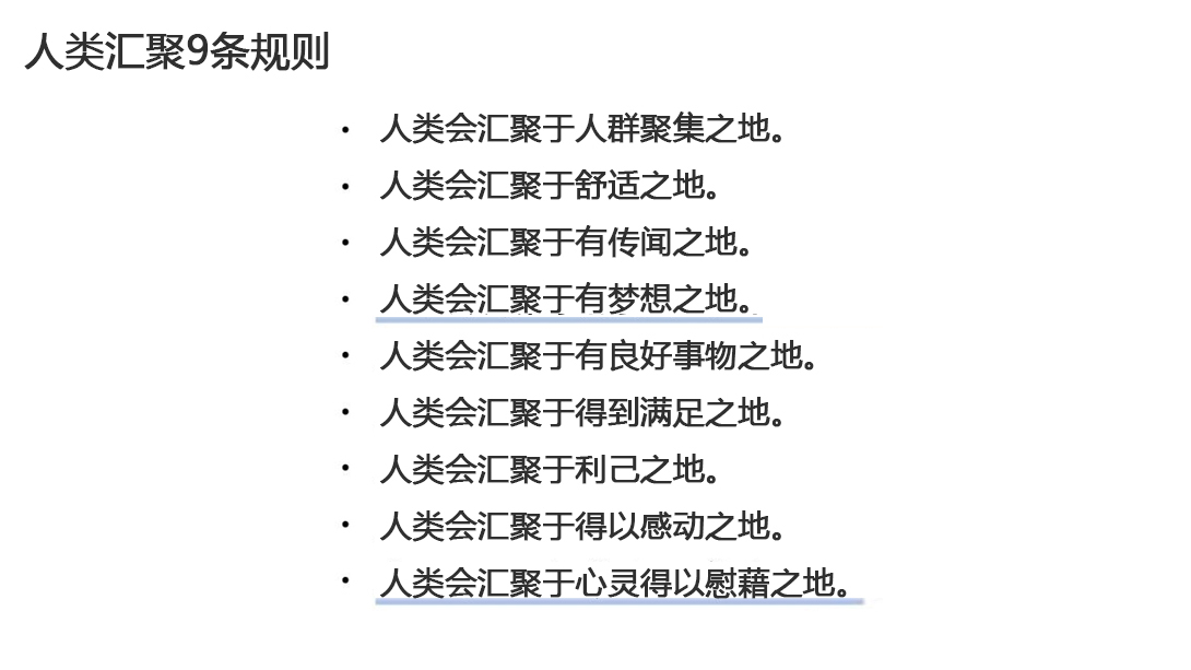 如果在“人类汇聚9条规则”中再追加一条的话,我认为应该是“人类会汇聚于能够使人快乐之地”。