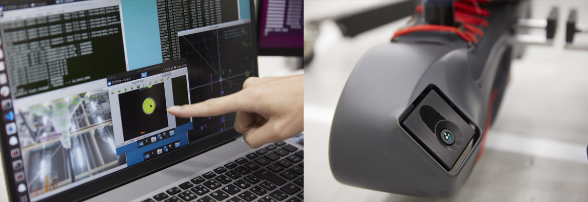 另外,由于在脚上安装了摄像机,所以传感功能也有了很大进步。可以看到,在操作画面上像热成像一样有颜色的部分,是为了识别手掌到球的距离以及认定正确位置的新系统。