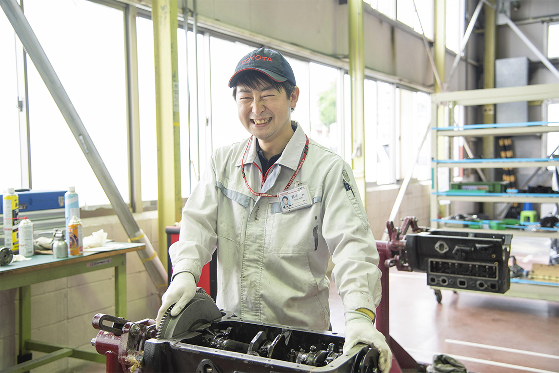 我所在部门的总经理对我说明了复原项目的事情。一直以来,我的工作就是把汽车当作一个空间,以创造移动中的快乐空间为目标。这次我选择参加,是因为想用数字技术来帮助项目组的所有人。比如制作复原后在博物馆展示的TOYOPET RACER的VR影像之类的。因为之前没有在制造一线进行过培训,所以这是我第一次接触到发动机。我没想到自己会穿上工作服,并且满身油污。