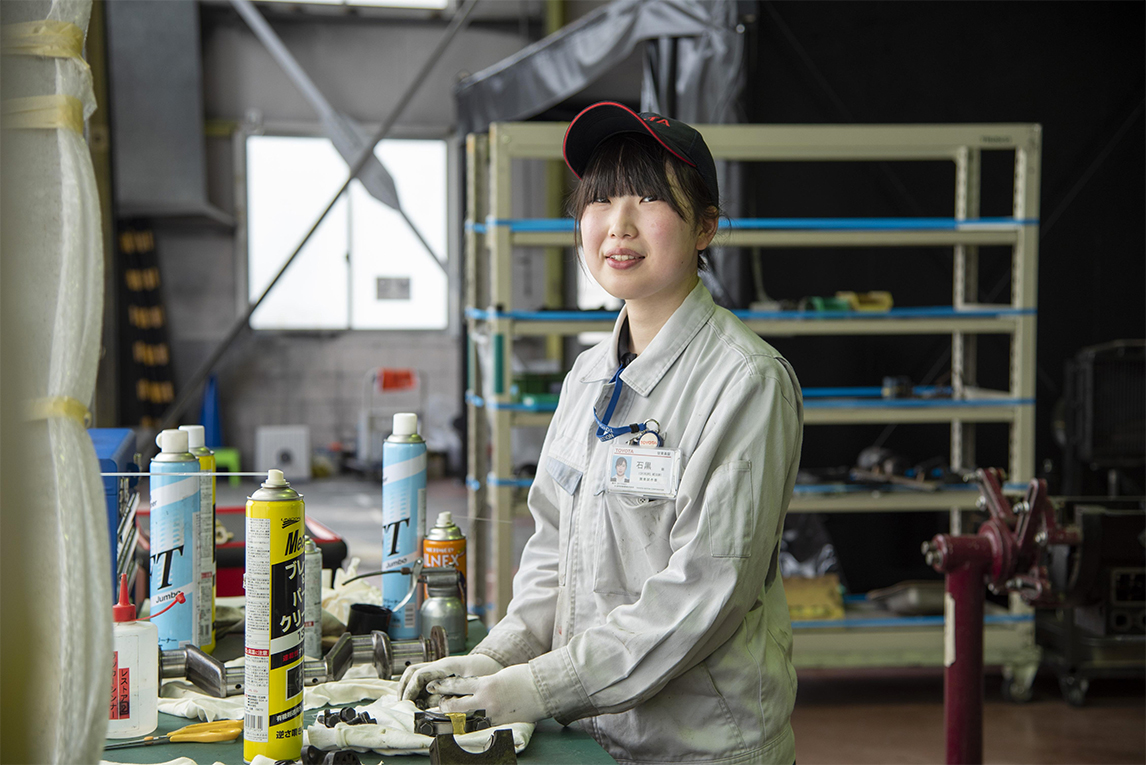 负责发动机修复翻新作业的3人分别是铃木修平、仲程慈英和石黑萌。