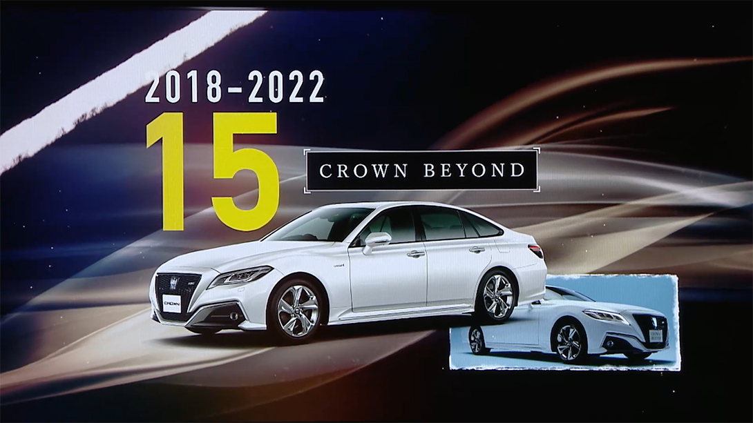 “今天是新车发布会,但是在入口处大家看到了1-15代皇冠的身影。这是为什么呢?”面对出席发布会的人们,丰田抛出了这个问题,并以此为开头进行了接下来的演讲。