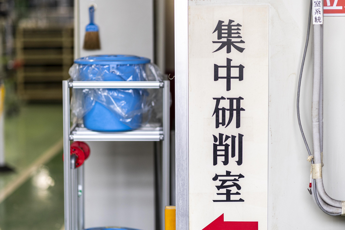 上图为集磨,即集中磨削室的指引板,它悬挂在总公司工厂内。在这里拥有切削工具方面的专家