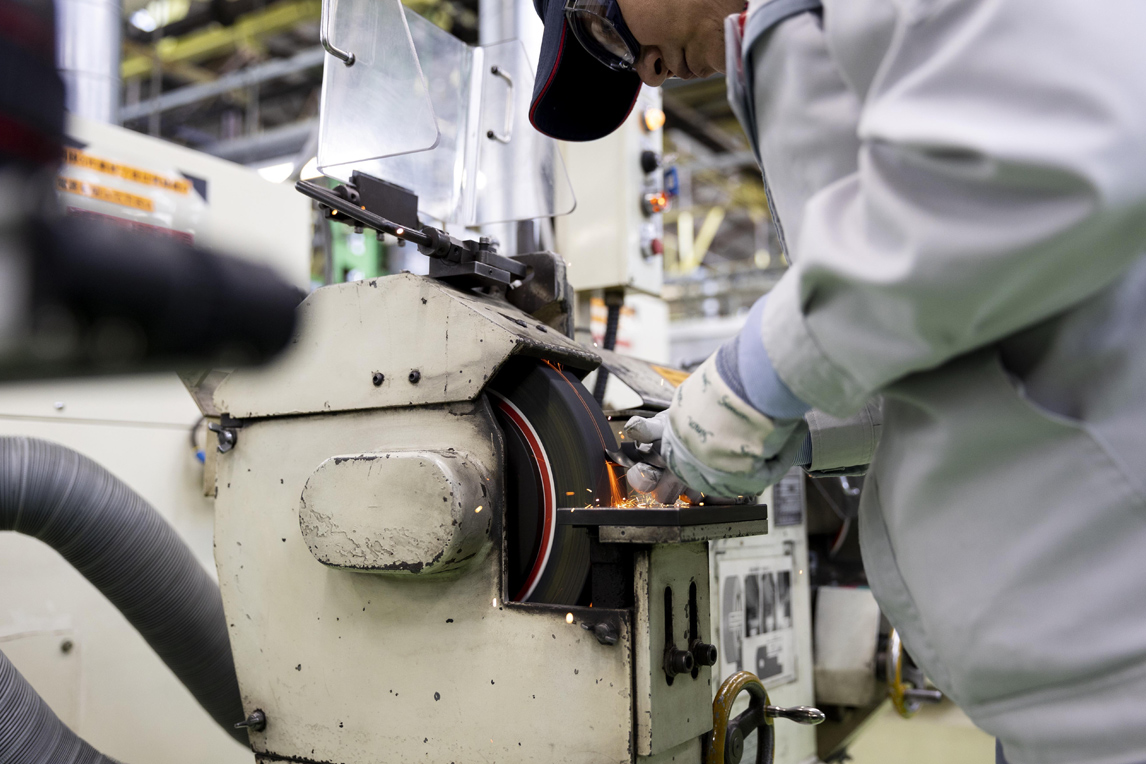 “我们研磨好(切削工具)并送往加工一线,工具马上又会因为磨损而被送回来。另外,由于当时一个机械上安装有好几个切削工具,因此工具的数量很多,相应的工作量也会增多。我们几乎没有休息时间,总是在不断工作。”