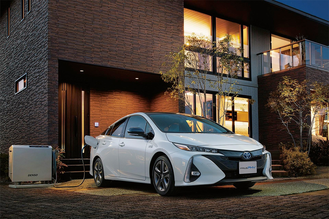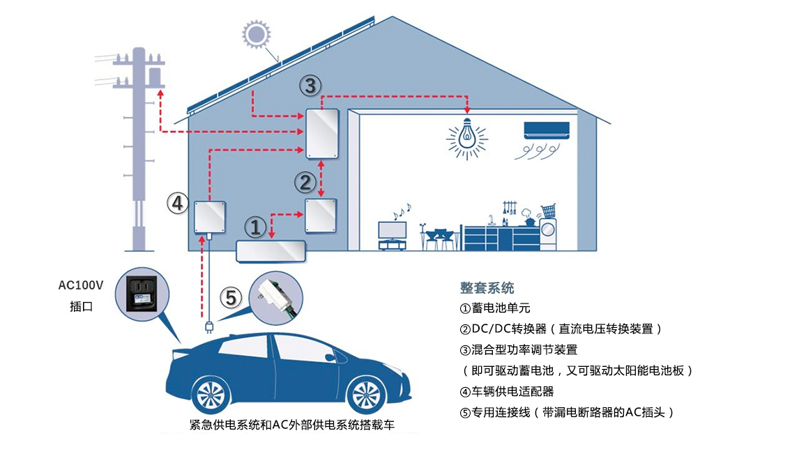 上图为使用V2H(Vehicle to Home)设备给住宅供电的PRIUS PHEV。