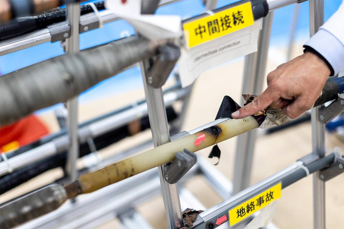 照片中右侧的人就是彦田的部下,伊藤弘树。两人一起展示了检查与维修高压电缆的技术。