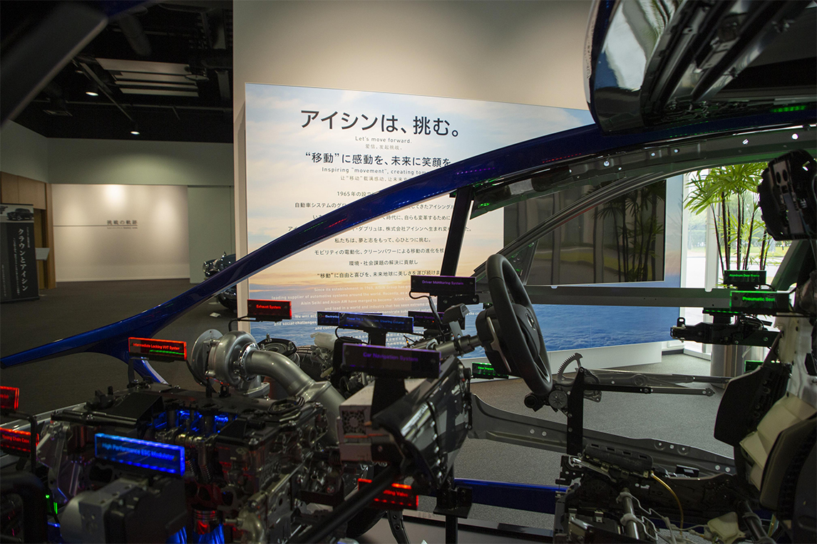 从日本名古屋车站出发,历经约40分钟的高速车程,我们来到了位于爱知县刈谷市的爱信集团产品展示馆——“AISIN com-center”,据说这里正在举办一场名为“皇冠与爱信”的特别展览。