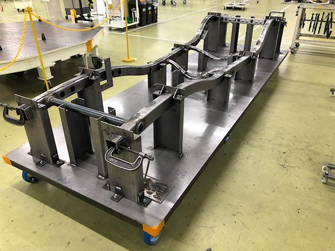 梯型车架是车辆的“基础”,其上会搭载发动机、变速器、车身等等,因此梯型车架在强度和精度上都有着严格要求,而且必须最先完成它的制造。