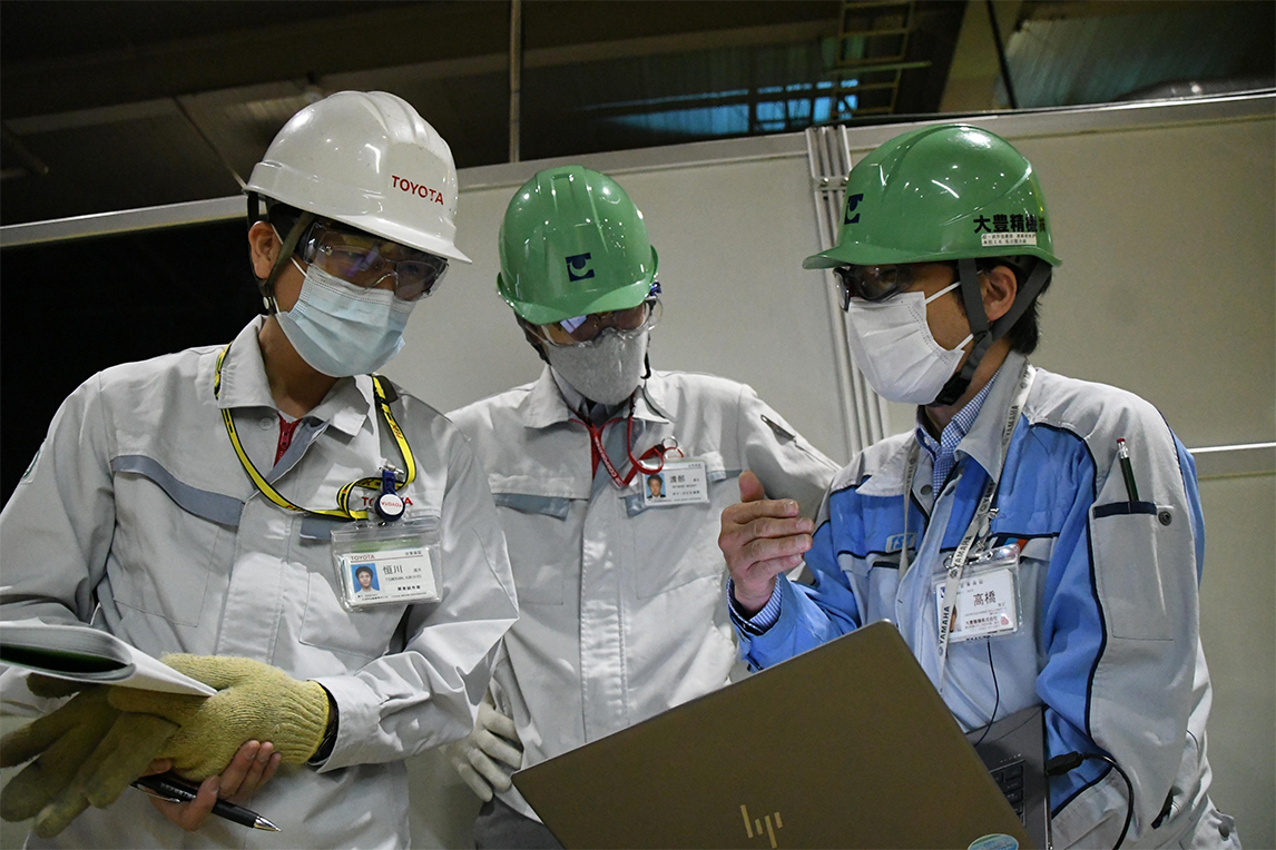 上图为反复进行试错测试的日本大丰精机平川(左)、高桥(中)以及志智(右)。