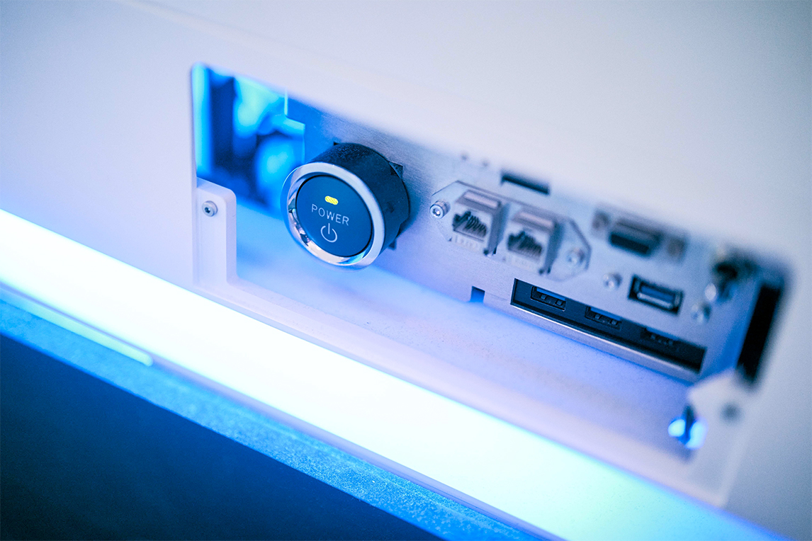 医流机器人的启动按钮,采用了丰田汽车的动力总成开关设计样式。
