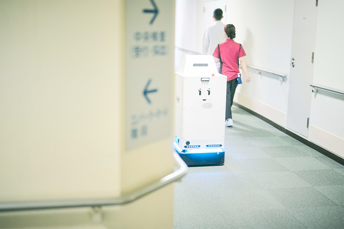 在位于日本爱知县丰田市的丰田纪念医院里,拥有自动搬运功能的医流机器人*正在大显身手。它们的存在“减轻了护士的负担,给他们腾出更多时间应对患者”。