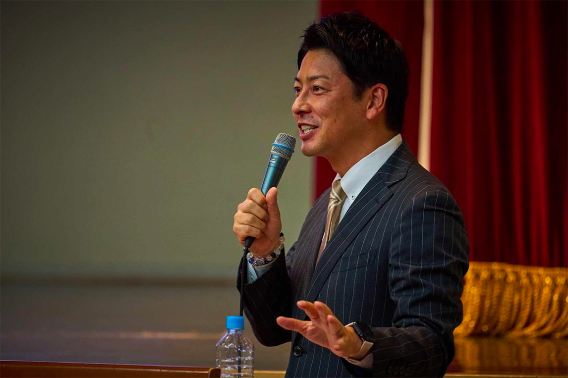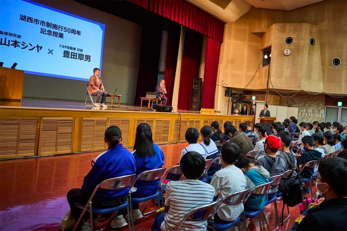 接下来,到了中学生提问的环节。丰田社长再次走上讲台,与山本晋也一同回答同学们的提问。