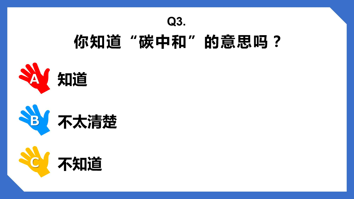 对于碳中和这个概念,最重要的是“正确理解”。考虑到台下还坐着年纪尚幼的初一学生,山本晋也为了方便他们也能“快乐学习”碳中和知识,于是决定以问答的形式进行介绍。