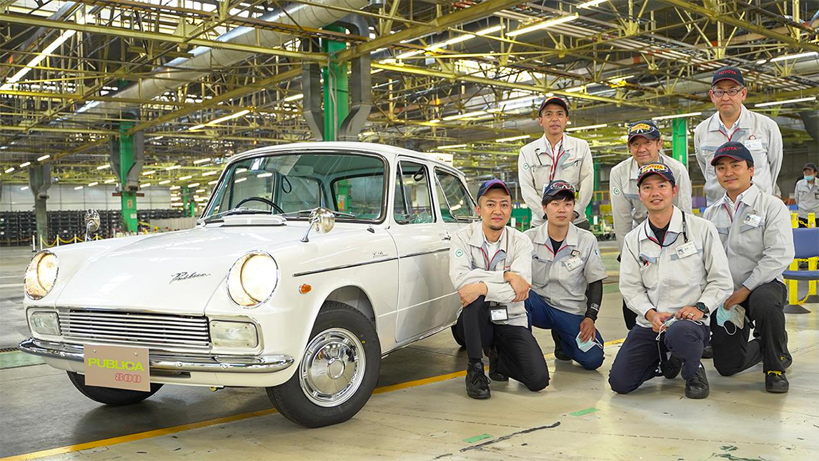成为初代皇冠修复翻新参考案例的便是“PUBLICA修复翻新项目”。该项目以上乡工厂、下山工厂的齐藤富久厂长为首,成员有来自同工厂发动机制造技术部的员工们,他们是齐藤礼央、富安金治、古味和弥、中尾茂树主、永原大志。