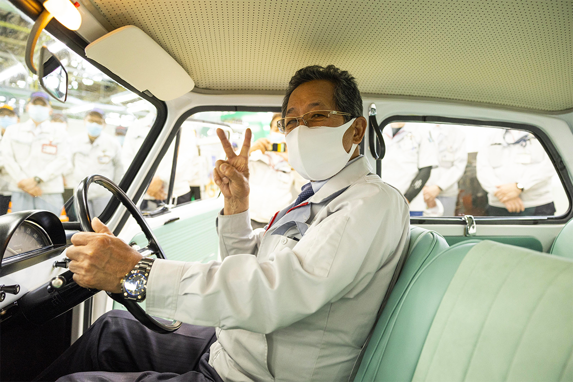坐在修复翻新完成的PUBLICA驾驶座上的河合满Executive Fellow感慨万千,这一刻令他回想起了曾经自己的那辆CORONA。