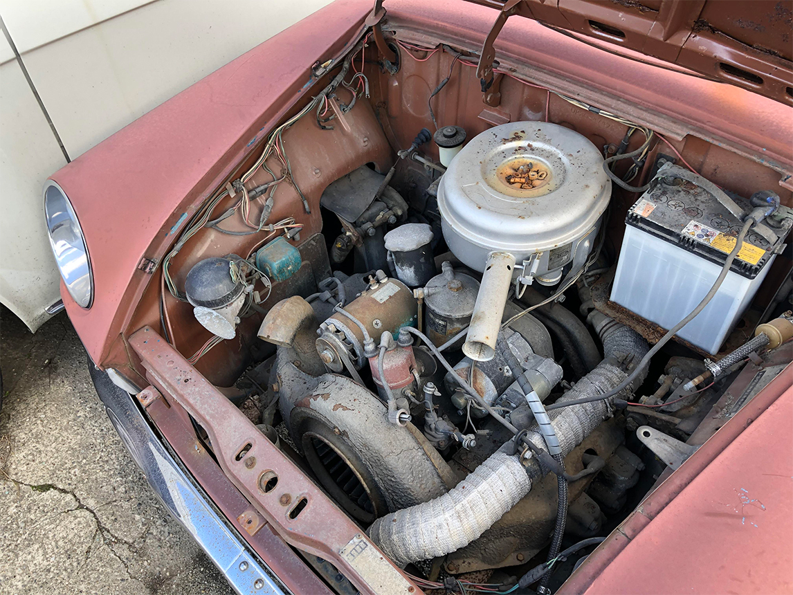就在成员们到处寻找尝试对象时,一辆荒废在国道边草丛里的1966年产“PUBLICA 800 Deluxe”出现在了他们面前。可坏消息是,这辆车早已面目全非,车身、座椅、发动机都破破烂烂的。