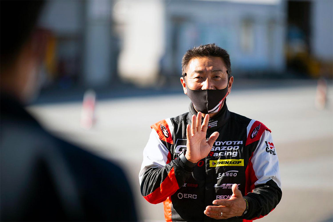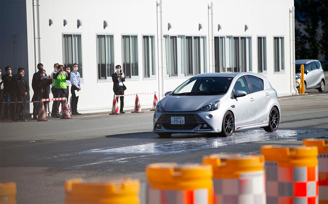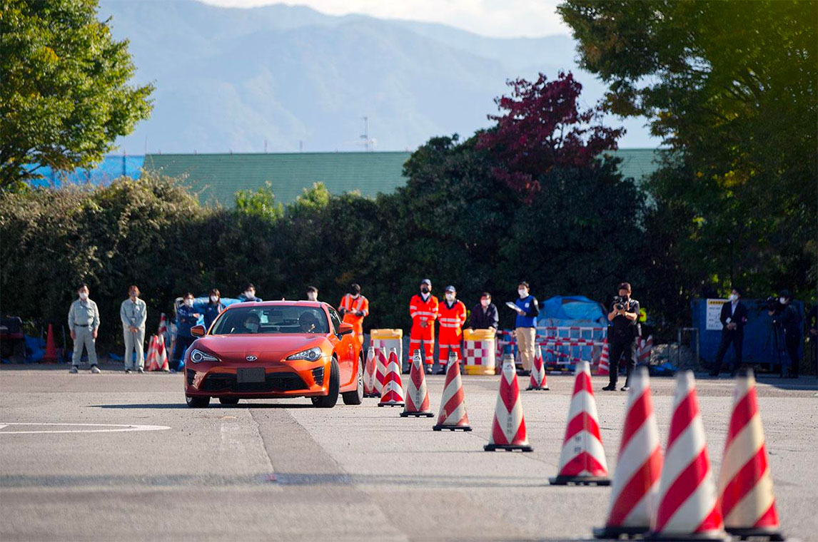 第一个项目绕桩测试的讲师是氢燃料发动机汽车的车手,在往期时报中曾报道过的“帮助Morizo提高驾驶技术的男人”——佐佐木雅弘。