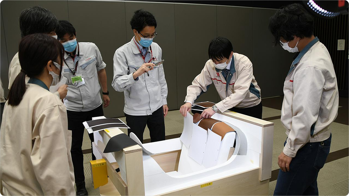 除了箕浦,丰田纺织召集来的成员还有,来自座套技术研发部的须藤骏、来自试作部的谷山光、来自座椅实验部的上川侑祐、来自设计部的山口论以及片冈港人、来自座椅计划部的杉野和美和来自材料技术研发部的安田大晃。
