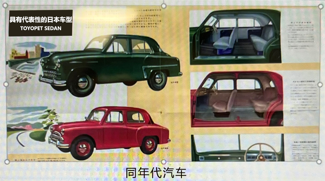 参考旧产品宣传册(丰田博物馆收藏品)、杂志报道与广告等内容,确定座椅材质与颜色。