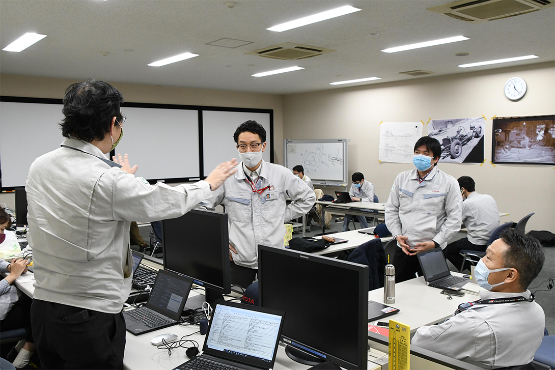 渡部与丰田纺织的小组成员一起进行了座椅的初期研讨工作,同时还和TOYOPET RACER复原计划的成员们讨论车辆布局的问题,如发动机、变速器、驾驶员座椅的理想装配位置等。他们首先绘制图纸,再使用3D-CAD技术进行数字化处理。