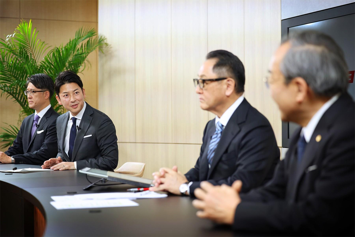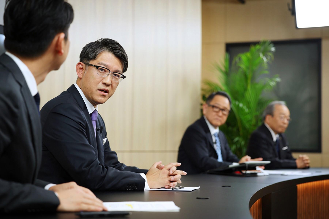 场景三:富川主播询问丰田社长:“对您来说,内山田会长是什么样的人”。