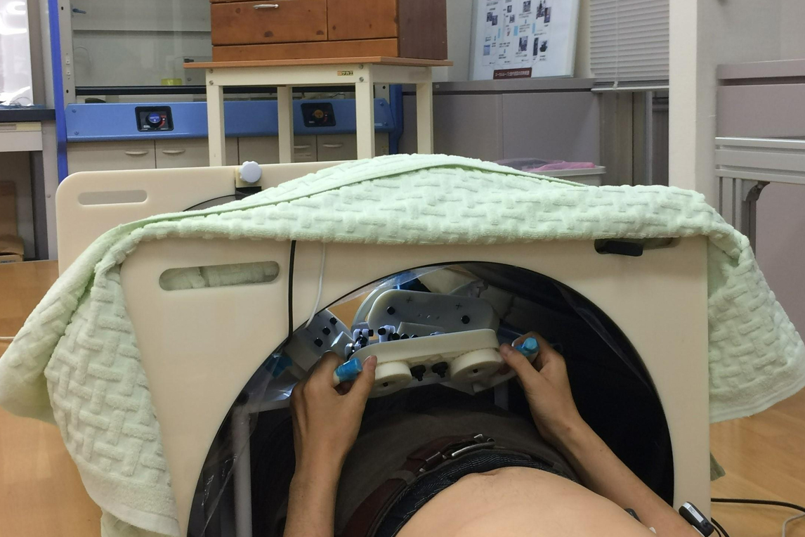 现在,我们正在与隶属于日本理化学研究所的下田真吾老师进行着一项脑活动研究,该研究所一直致力于推动合作研究项目。我们正在针对“在大脑受损无法下达运动指令时,与大脑相连的中枢神经系统‘脊髓’,是否会代偿控制神经回路”这一假说,进行着验证。