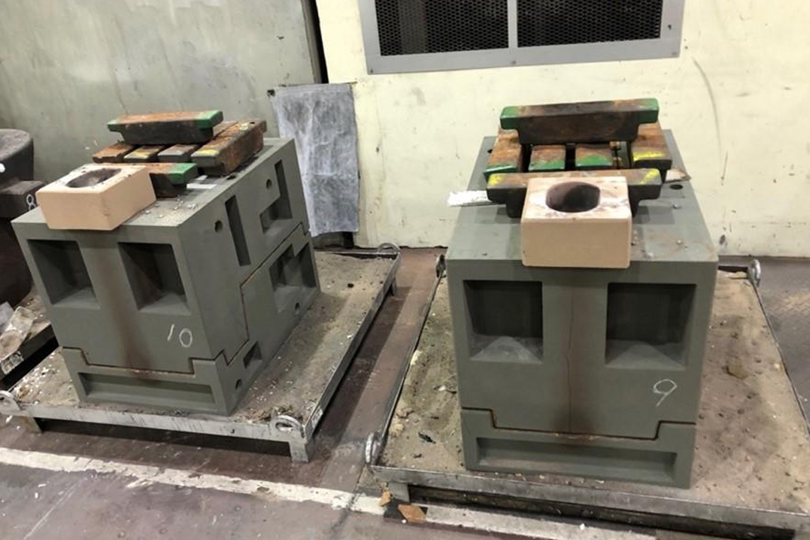 即先做锻模,然后用沙子把锻模填实,再把做好的模具从砂型中取出,在空洞的部分灌入熔化的铁水(熔汤)使其成形。但是,如果用锻模制作砂型的话,会需要很高的成本和很长的时间。