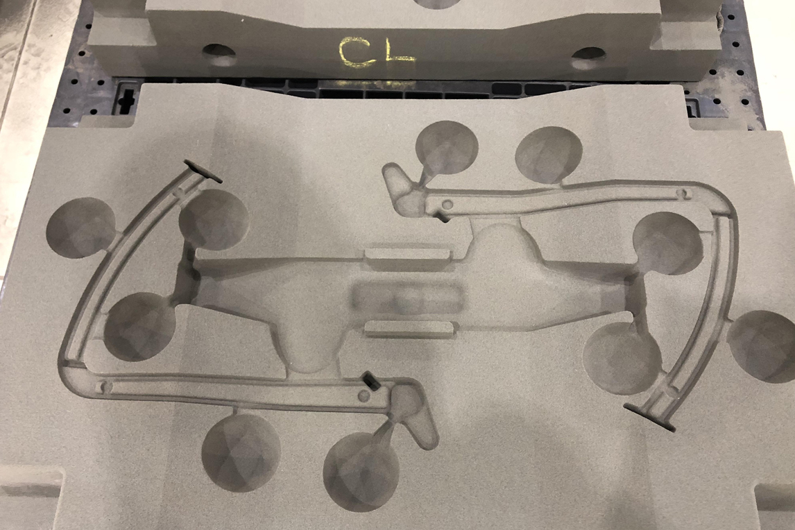 其实,原本用于铸造汽车零件的锻模与砂型,要花费数年时间制作,但这次因项目时间有限,我们决定使用3D打印技术来制作铸造用砂型。出乎意料的是,现在3D建模数据精度非常高,在最后进行精加工成形时特别顺利,毫不费力就完成了最后工序。