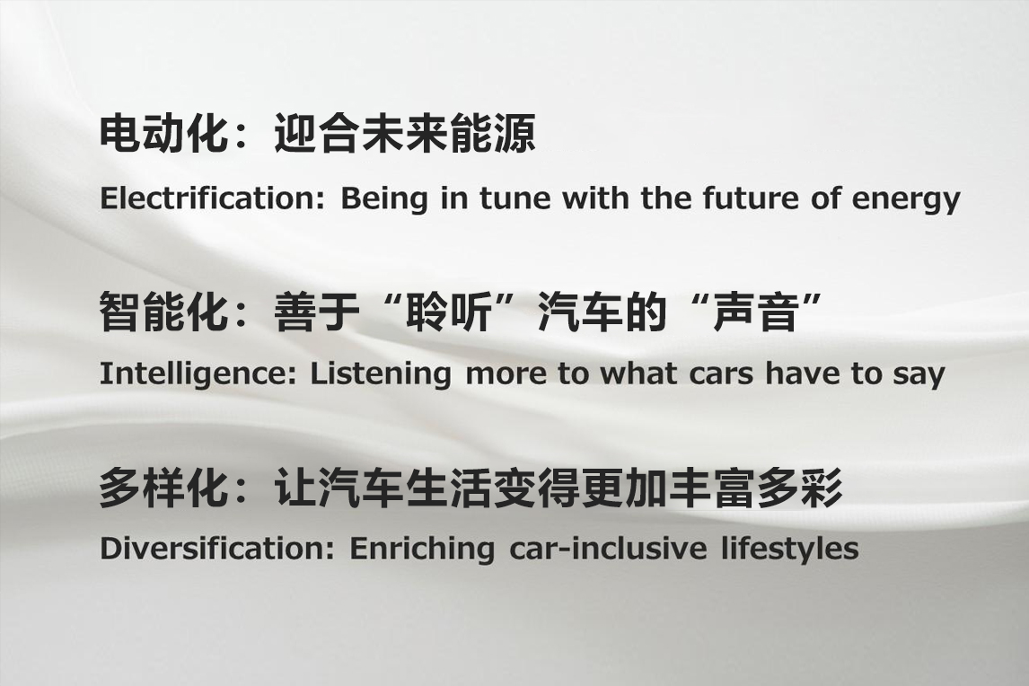 围绕造车中“电动化”“智能化”“多样化”这三个主题推进工作。