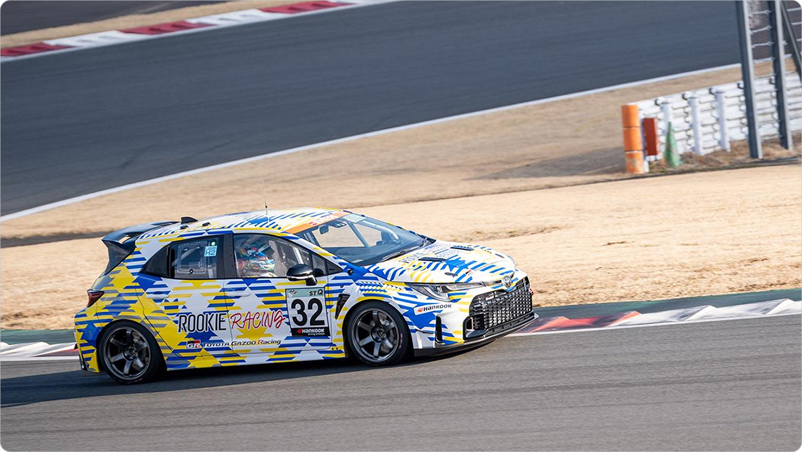 2月23日,位于日本静冈县小山市的富士国际赛车场上,以液氢作为燃料的GR COROLLA正在进行超级耐力赛的测试跑。