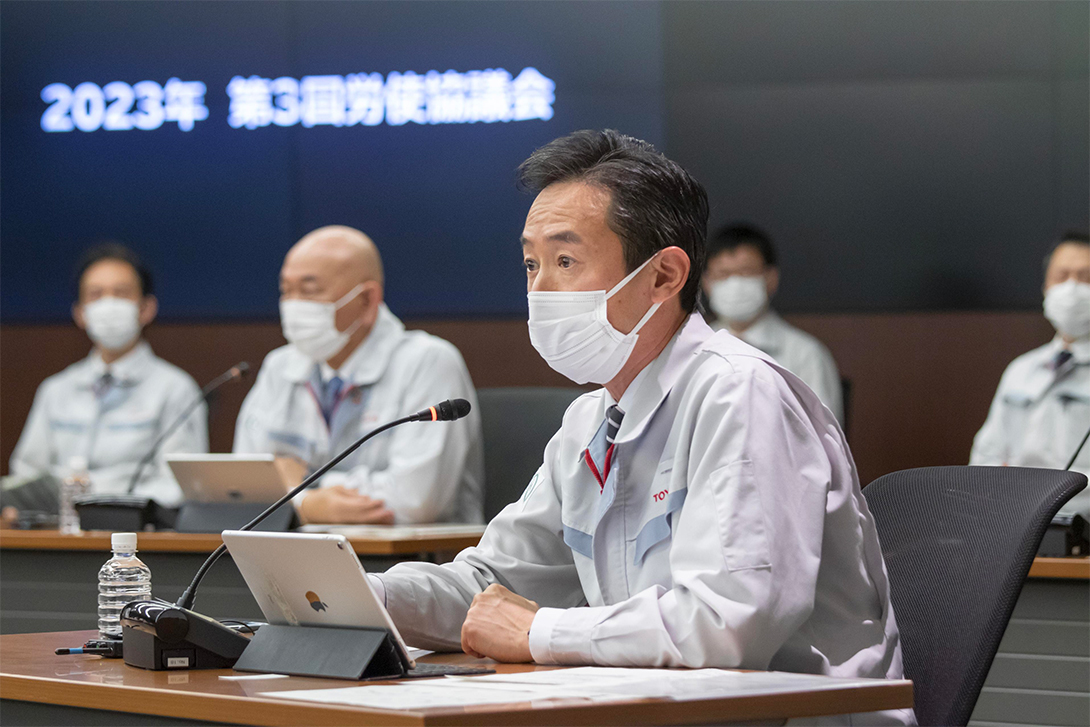 今年的劳资协商议会我们主要针对“更加尊重个体多样化,进一步激发个人活力,让每个人都能尽情发挥自己的能力”以及“通过上述改变,要作出怎样的努力才能更好地为他人服务”等问题进行了讨论。