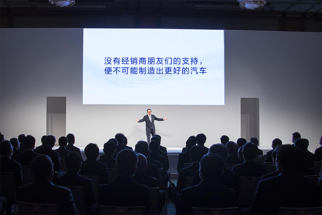 面向225家丰田雷克萨斯经销商代表,丰田章男社长进行了讲话。