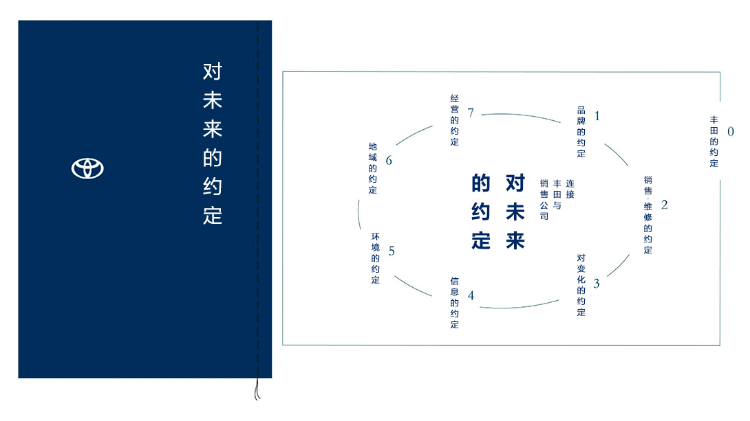 *总结丰田与销售公司之间约定内容的小册子。为了能构建品牌、得到社会的信任,该册子记载了7项丰田承诺的行动指南。