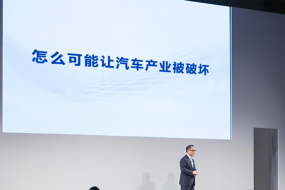 如何应对变幻莫测的时代以及不断到来的“危机”?丰田社长首先登上了演讲台,并就此发表了讲话。