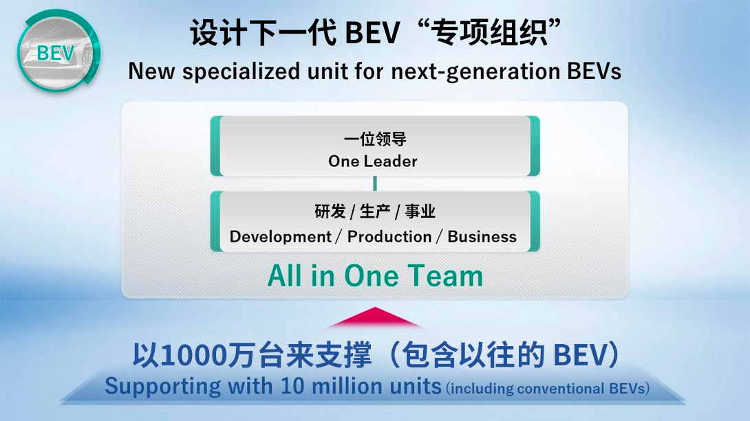 同时,要面向普及期研发新一代BEV,构建新的业务模式,为未来大胆前进而做好准备。
