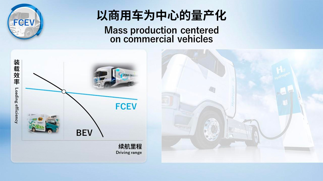 另外,FCEV还有加氢时间短等特点,我们可以发挥这些优点,携手合作伙伴们扩大中型、大型卡车等商用车型的使用范围。