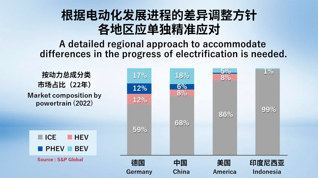 发挥各种车型的优势和特色,根据顾客所在地区的需求推行电动化。