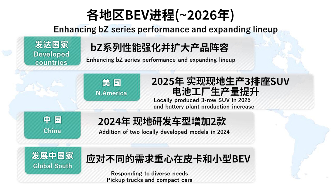 发展中国家,特别是亚洲的发展中国家,丰田将重视,并切实应对正处于萌芽阶段的BEV需求。