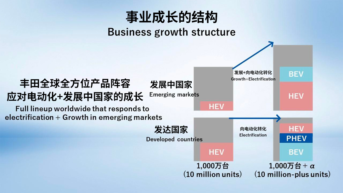 全方位产品阵容和已实现盈利的HEV、PHEV,以及不断增加选项的BEV,丰田将通过以上多种手段,切实应对全球多样化的需求,实现进一步成长。