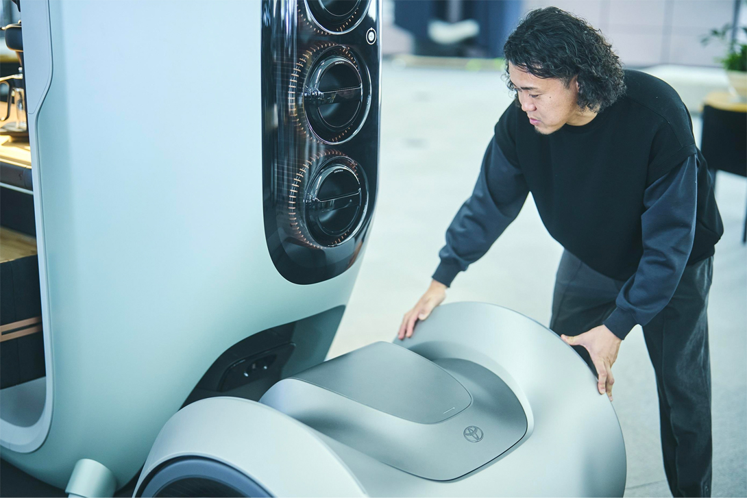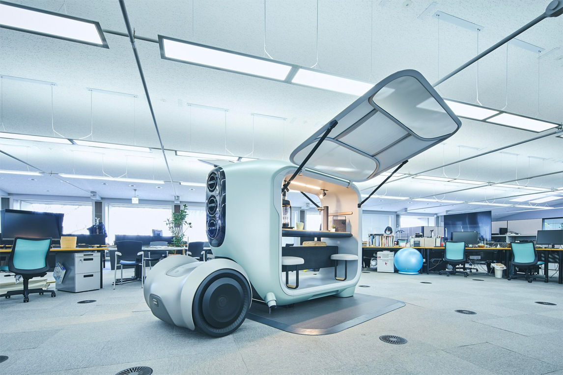 其中一个例子就是被设计成咖啡厅外观的移动出行产品,我们在设计室的中央位置看到了它。